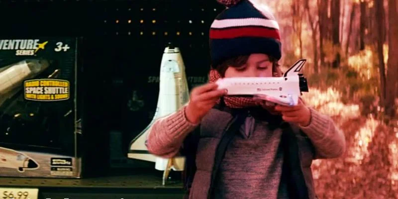 The youngest child is given a toy rocket. The parents take the batteries out to be safe. But the child secretly takes them back. When the toy makes a noise, a creature immediately attacks and kills the child. This death shows how dangerous any sound can be.