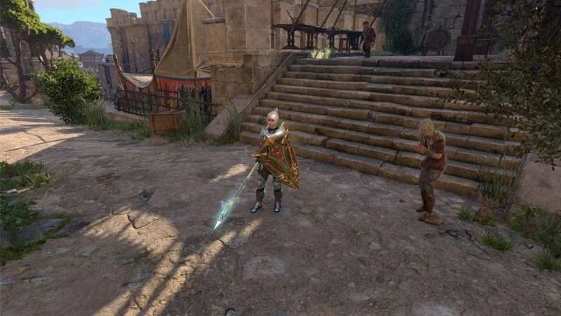 During cinematic conversations your character model sometimes hides equipped weapons. A blade that sits on the hip during exploration can disappear when the camera tightens for a cutscene. This is common with long weapons and staves since the scene rig swaps to a clean animation set.