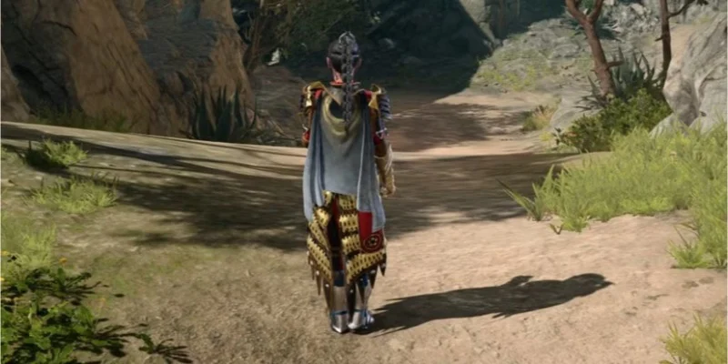 You can trigger it by rotating the camera during jumps or by using ladders in the Goblin Camp. The animation blends prioritize pathing and collision over cosmetic bones which lets strands and fabric intersect with breastplates and pauldrons.