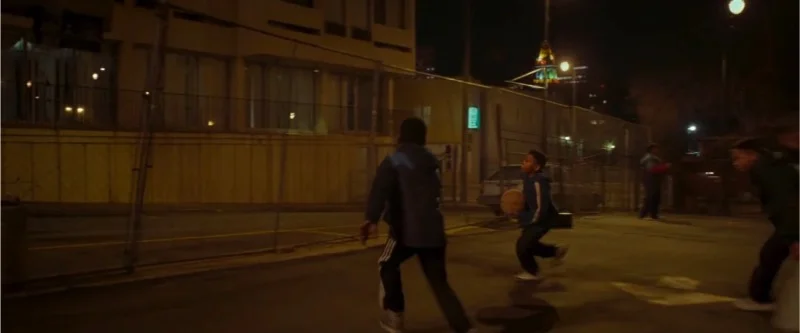 During the 1990s Oakland prologue, the window blinds are a quiet background detail that do not stay put. One shot holds the slats at a tilted angle that blocks outside light, and the reverse shot shows them straighter with brighter spill coming through.