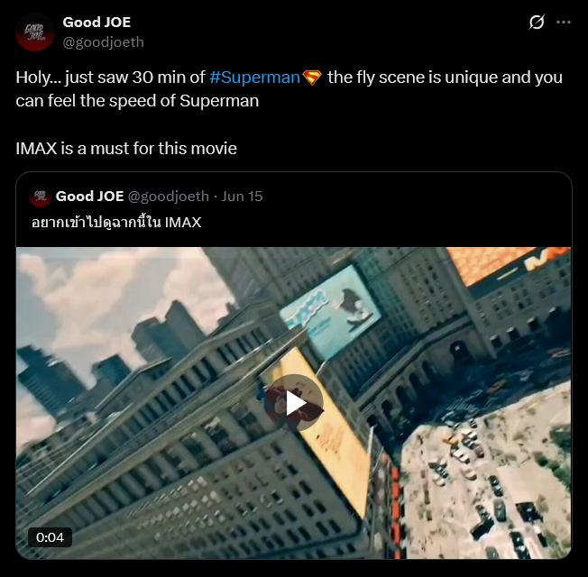 A different fan added, “Holy… just saw 30 min of #Superman the fly scene is unique and you can feel the speed of Superman. IMAX is a must for this movie.”