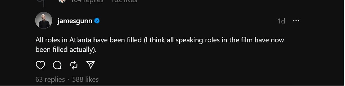 James Gunn used the opportunity to inform fans that all the speaking parts in the movie had been assigned.