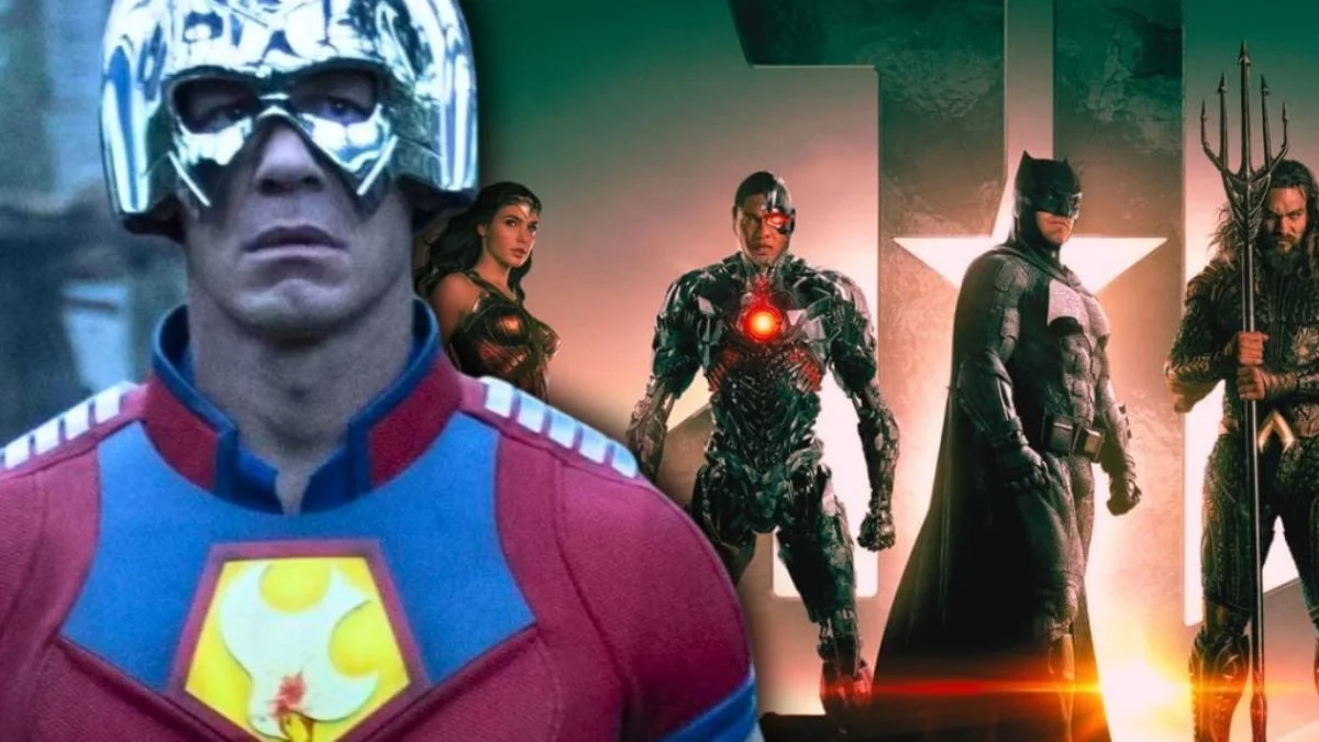 At the Season 1 finale, Peacemaker (John Cena) had just finished fighting the extraterrestrial Butterflies and was carrying an unconscious Harcourt (Jennifer Holland). Suddenly, the Justice League appeared, including Ezra Miller’s Flash, Jason Momoa’s Aquaman, and silhouetted versions of Superman and Wonder Woman.