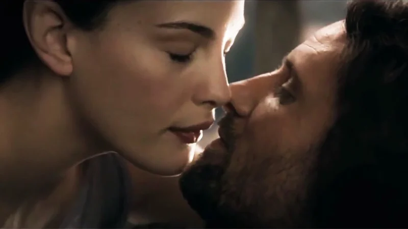 In a quiet yet powerful moment, Aragorn dreams of Arwen, where Liv Tyler’s ethereal presence contrasts with the grim reality of their impossible love. The vision, tinged with her plea to stay true to their bond, carries a bittersweet weight that hits unexpectedly hard.