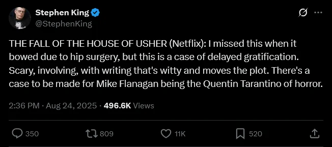 King’s comments underscore just how much Flanagan has impressed him, even when adapting material outside of King’s own books. Fans of both horror and Poe are clearly taking notice, and the series has solidified Flanagan’s reputation as one of the most compelling directors in modern horror.