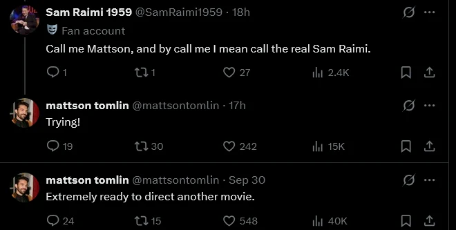 Tomlin also engaged with fans online, confirming he is trying to contact Raimi.