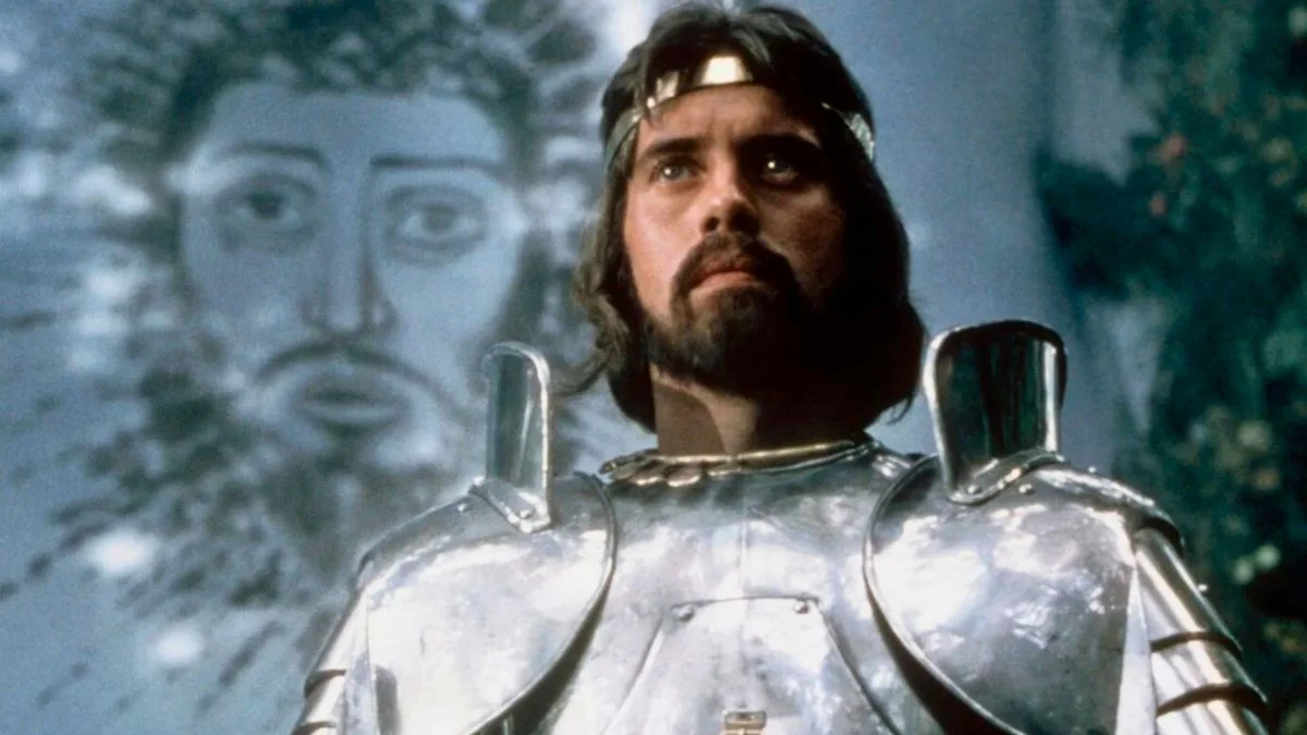 Nigel Terry’s Arthur in ‘Excalibur’ spans the full arc from uncertain squire to the wounded king who sails to Avalon. The film adapts major pieces of the legend including the sword in the stone, the forging of the Round Table, the betrayal that breaks the court, and the final ride with Bedivere.