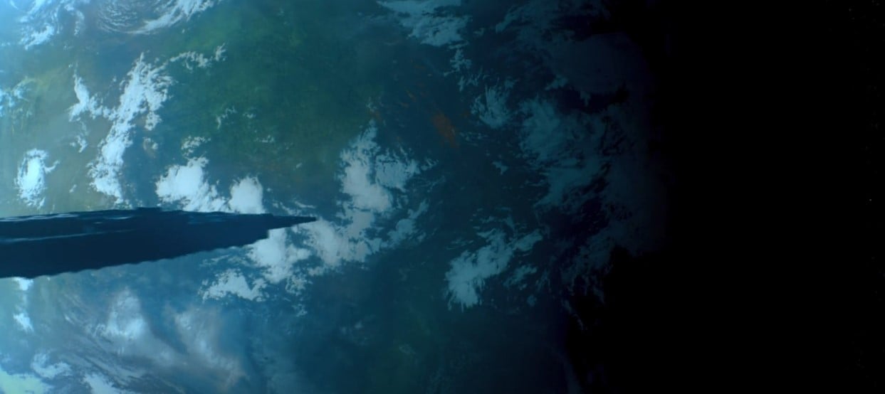 5981407 years after Aniara was struck by an accident that made the ship stray from the course, the ship is finally entering the Lyra constellation frozen and devoid of all possible life. The gravity device on board stopped functioning a long time ago and we can see pieces of dust and algae floating suspended in air. It seems that Aniara is approaching what appears to be a planet capable of supporting life, as it looks almost exactly like Earth from this vantage point.