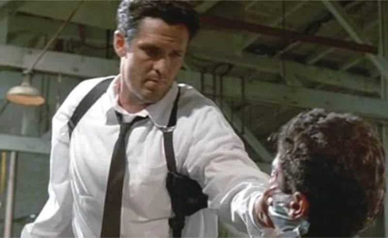 The final showdown turns into a triangle of drawn guns between Joe, Nice Guy Eddie, and Mr. White. Each man states a position without proposing a safe search of the suspect or a controlled disarmament. No one suggests a temporary separation into corners of the room or a quick frisk followed by a hold, which would reduce reflex shooting.
