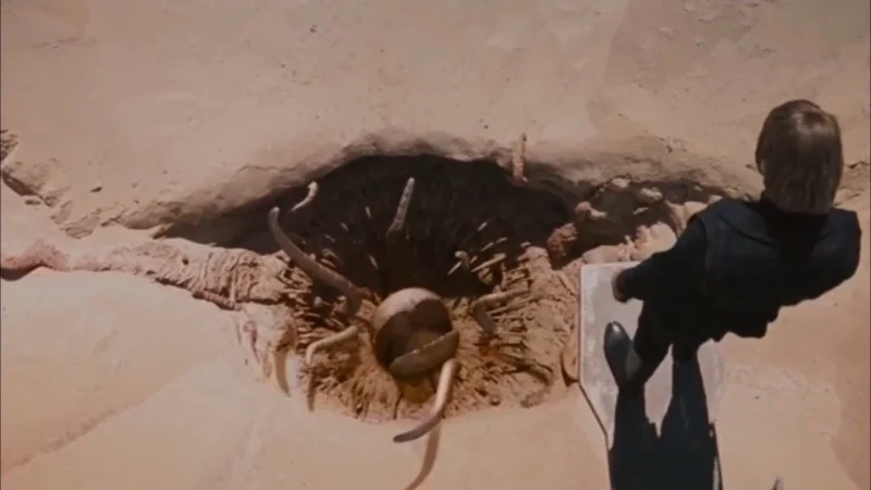 The Sarlacc itself used a pit set with practical tendrils and beak elements added in later versions. Sand effects, dust, and falling debris were layered from multiple passes to sell depth when characters dropped into the maw.