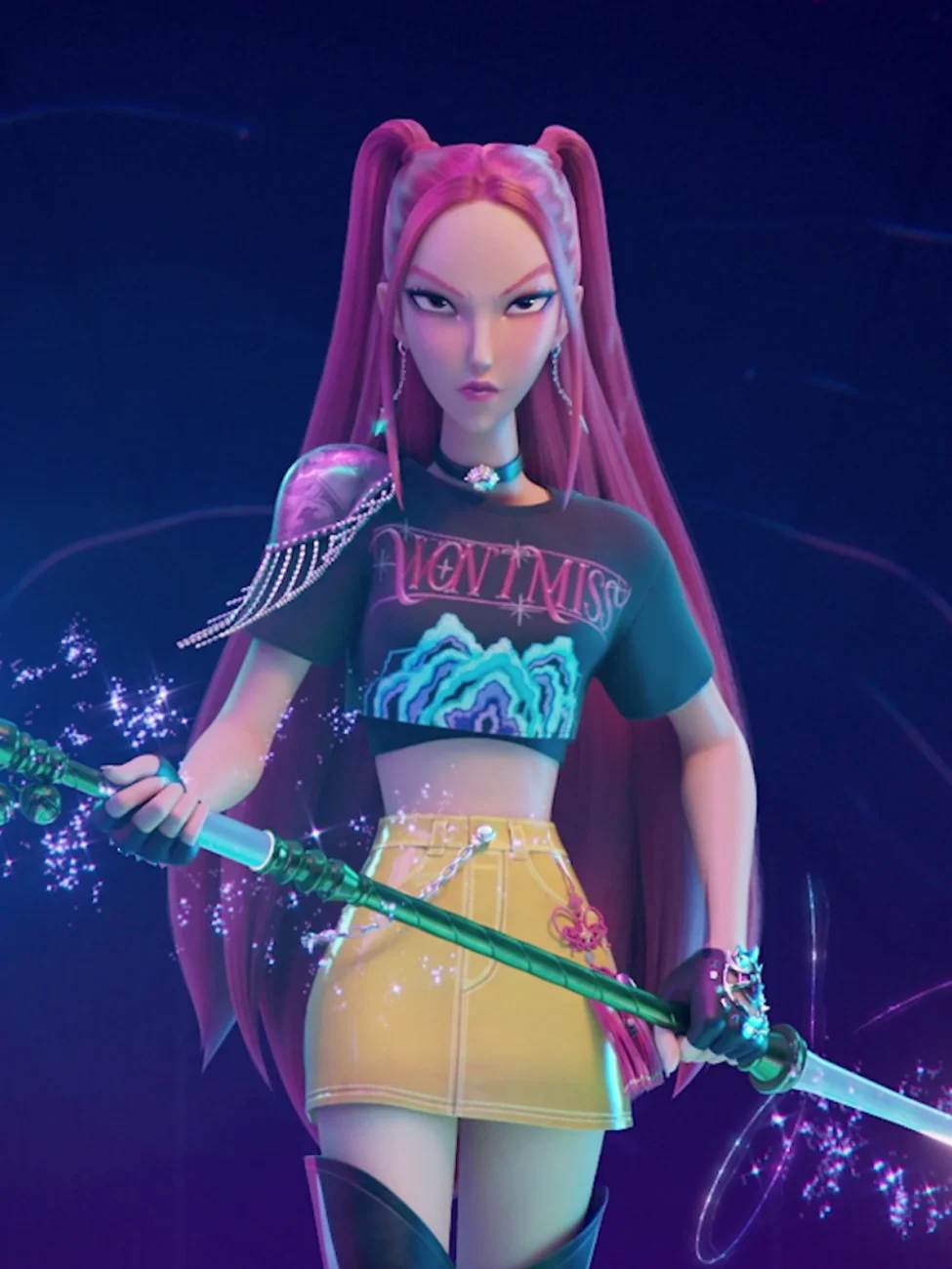Zoey is a key character in KPop Demon Hunters and the youngest member of the girl group HUNTR/X. She’s a skilled K-pop idol and the group’s lead rapper, who secretly fights demons alongside her bandmates using special knives called shin-kal. Born Korean and raised in Burbank, California, Zoey is known for her playful, youthful personality.