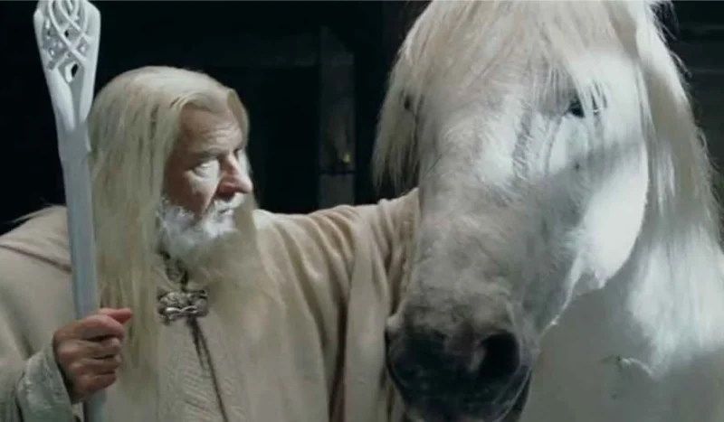 He rides Shadowfax, lord of horses