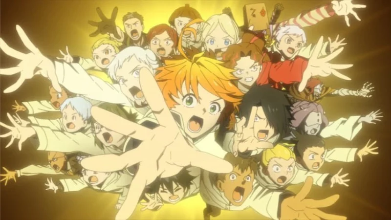 CloverWorks condensed a large portion of the story with a time jump and montage that referenced events rather than adapting them at length. The broadcast advanced Emma and the group beyond a major conflict location and removed several characters who were central in print.