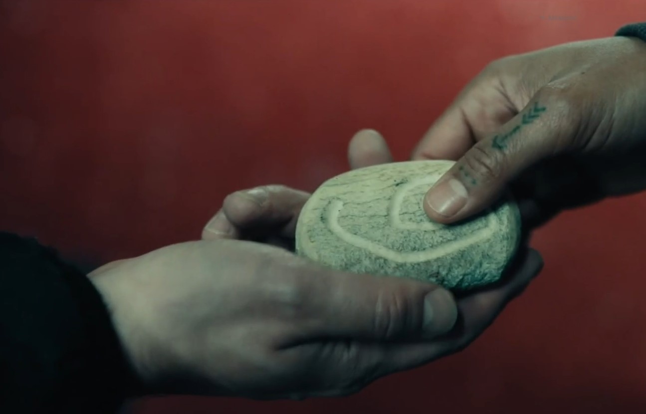 Now, in the latter half of the episode Qavik and his friend manage to track down Navarro and Qavik can be seen handing to her a rock with the spiral symbol etched in the rock.