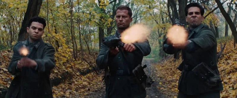 The film rewrites the end of the Second World War by killing Adolf Hitler and senior Nazi leaders inside a cinema. That climactic operation is fictional, and the movie also invents units and missions that do not appear in historical records.