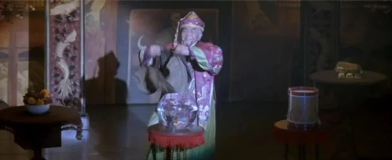The film features a memorable example from stage magic history in which a performer presents a lifelong persona as a Chinese magician. This depiction references the real case of William Ellsworth Robinson who adopted the stage identity Chung Ling Soo. In the movie this example is used to show how a magician can hide a secret in plain sight by living the act off stage.